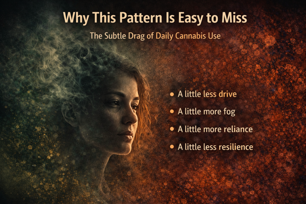 This is why daily THC can feel like it’s helping you function—while quietly training the brain to require it for drive, pleasure, and stress buffering.